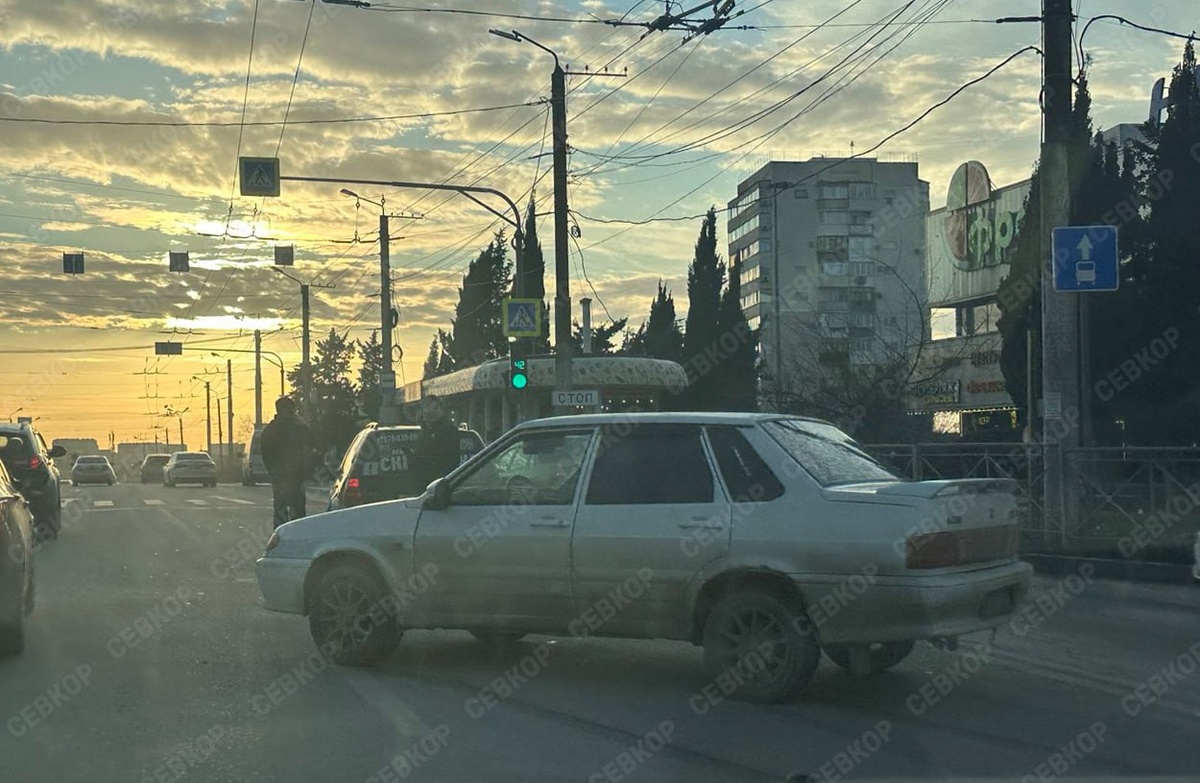 ДТП на площади по улице Вакуленчука. Занята полоса по направлению из города. Скапливается пробка.