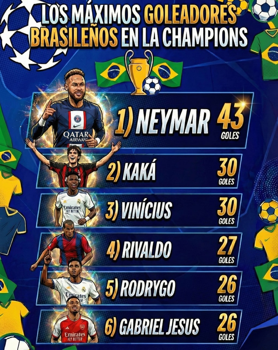 🇧🇷 Лучшие бомбардиры бразильцы в ЛЧ