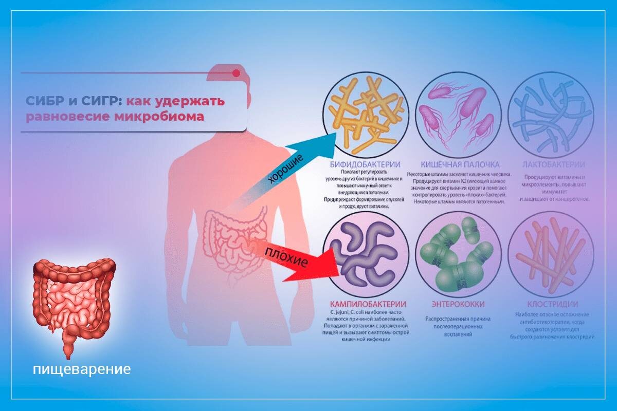 ? При подозрении на синдром избыточного бактериального роста (СИБР) или синдром избыточного грибкового роста (СИГР) будут определённые симптомы. 1️⃣Некоторые проявления СИБР (синдрома избыточного бактериального роста): Вздутие и метеоризм. Бактерии активно «переваривают» углеводы, выделяя газы — водород, метан, сероводород. Боли в животе. Могут быть разными: колющие, тянущие, схваткообразные. Обычно возникают после еды и связаны с брожением и повышенным давлением внутри кишечника. Диарея или запоры. В зависимости от типа преобладающих бактерий, СИБР может проявляться по-разному: Водород-продуцирующие бактерии — чаще вызывают диарею. Метан-продуцирующие — наоборот, приводят к запорам. Иногда симптомы чередуются. Дефицит витаминов и питательных веществ. Бактерии крадут у организма витамины, особенно B12, а также нарушают всасывание жиров и белков. Это может приводить к хронической усталости, выпадению волос, ломкости ногтей, анемии. Системные симптомы. Могут включать туман в голов