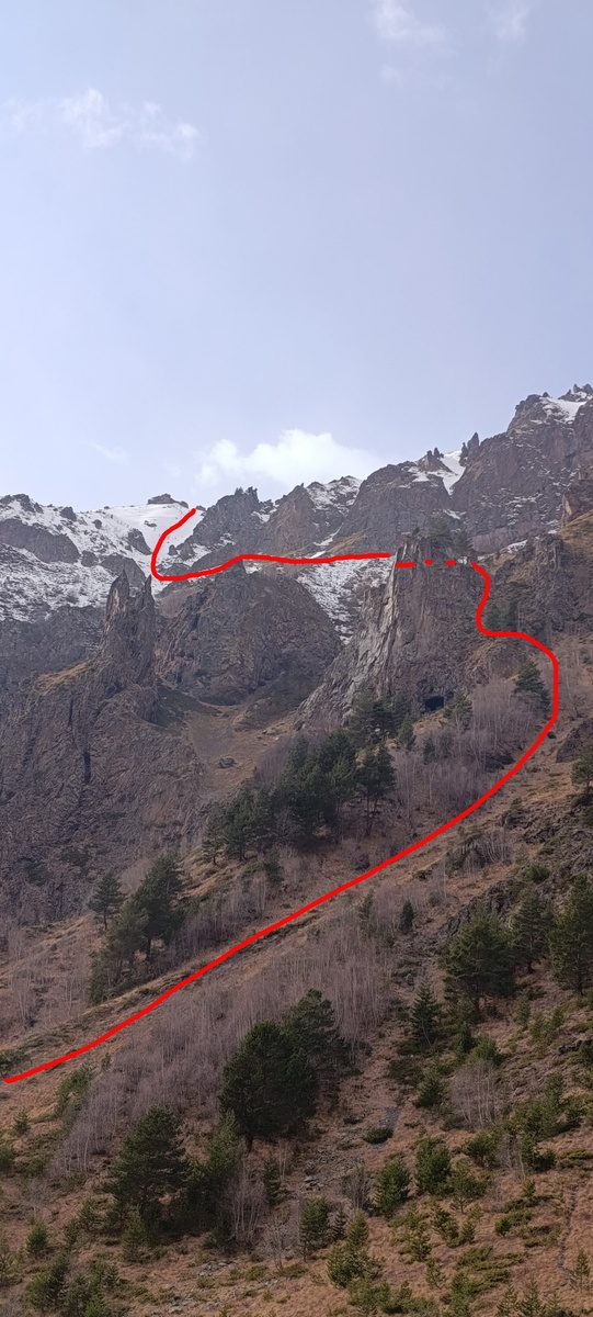 Вариант маршрута к Обсерваторию (43.27555, 42.49978, пик Терскол) с ущелья Терскол от гостиницы "у Ромазана" (43.27398, 42