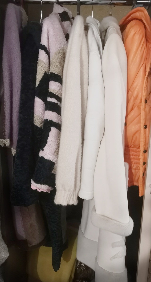 Кстати, не обманываю: дубленка, куртка, короткий кардиган. Здесь нет ещё белого теплого костюма из футера