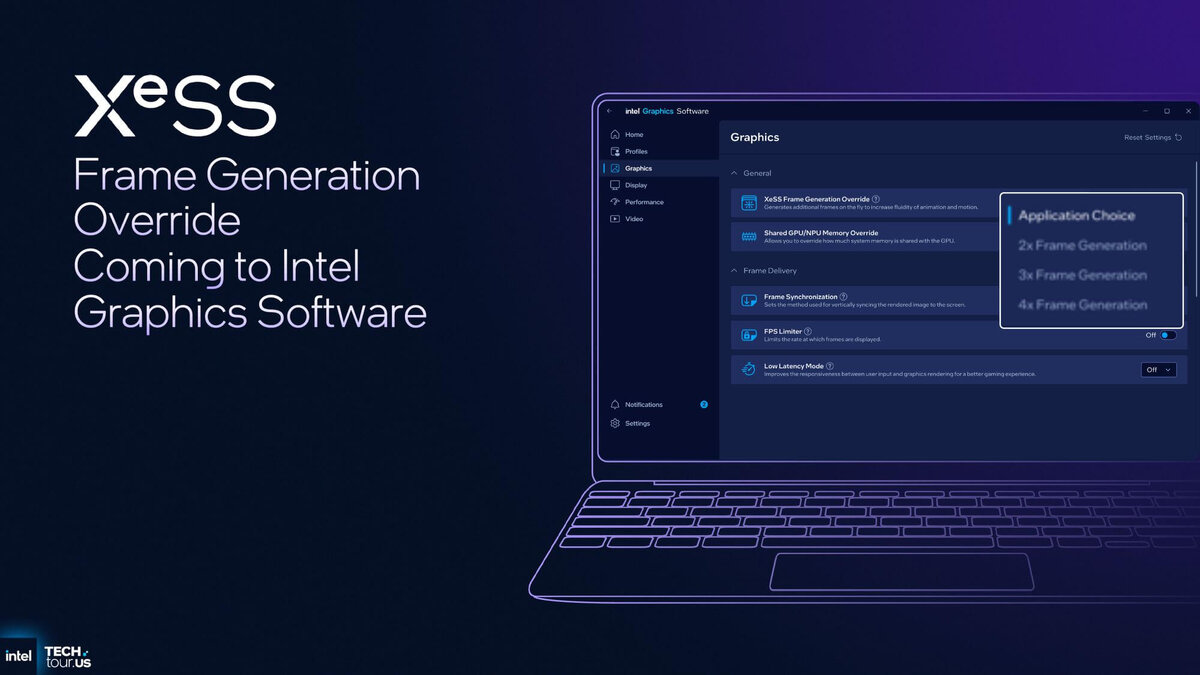 Intel начала распространение поддержки XeSS 3 – нового поколения своей ИИ-технологии масштабирования изображения с функцией многокадровой генерации. Технология была впервые представлена на мероприятии Intel Tech Tour в Аризоне в прошлом году. Intel XeSS 3 предлагает режимы 2×, 3× и 4×, создавая дополнительные кадры для повышения производительности. По принципу работы решение сопоставимо с DLSS Multi-Frame Generation от NVIDIA. По заявлению компании, внедрение XeSS 3 с многокадровой генерацией не требует доработки кода игр, ранее использовавших XeSS 2. Все проекты с уже реализованной поддержкой XeSS 2 автоматически получают доступ к новым возможностям через настройки в панели управления Intel Graphics Software. В перспективе, в зависимости от конкретной реализации в игре, параметры XeSS MFG могут появиться и непосредственно в игровых меню. Для возможности включения апскейлера, нужно обновить драйвер поддерживаемой видеокарты. Новая система масштабирования поддерживается дискретными виде