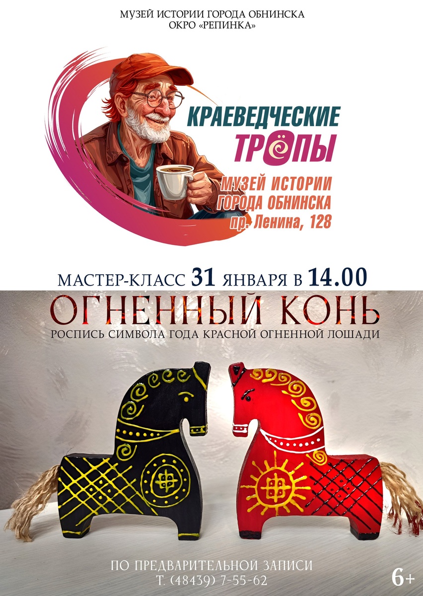 У вас есть время создать свой талисман года – Огненного коня – и расписать его древними магическими русскими символами. Краеведы ОКрО «Репинка» подготовили для вас деревянные фигурки-заготовки коней и ждут взрослых и детей от 12 лет 31 января 2026 в 14:00 на мастер-класс «Огненный конь» в Музее истории г. Обнинска. Все материалы для мастер-класса предоставляются. ❗Участие в мастер-классе бесплатное, по предварительной записи. Количество мест ограничено. Предварительная запись по телефону +7 (484) 397-55-62. Обнинск, пр-т ленина, 128. 👍 Подписаться | Ваша реклама