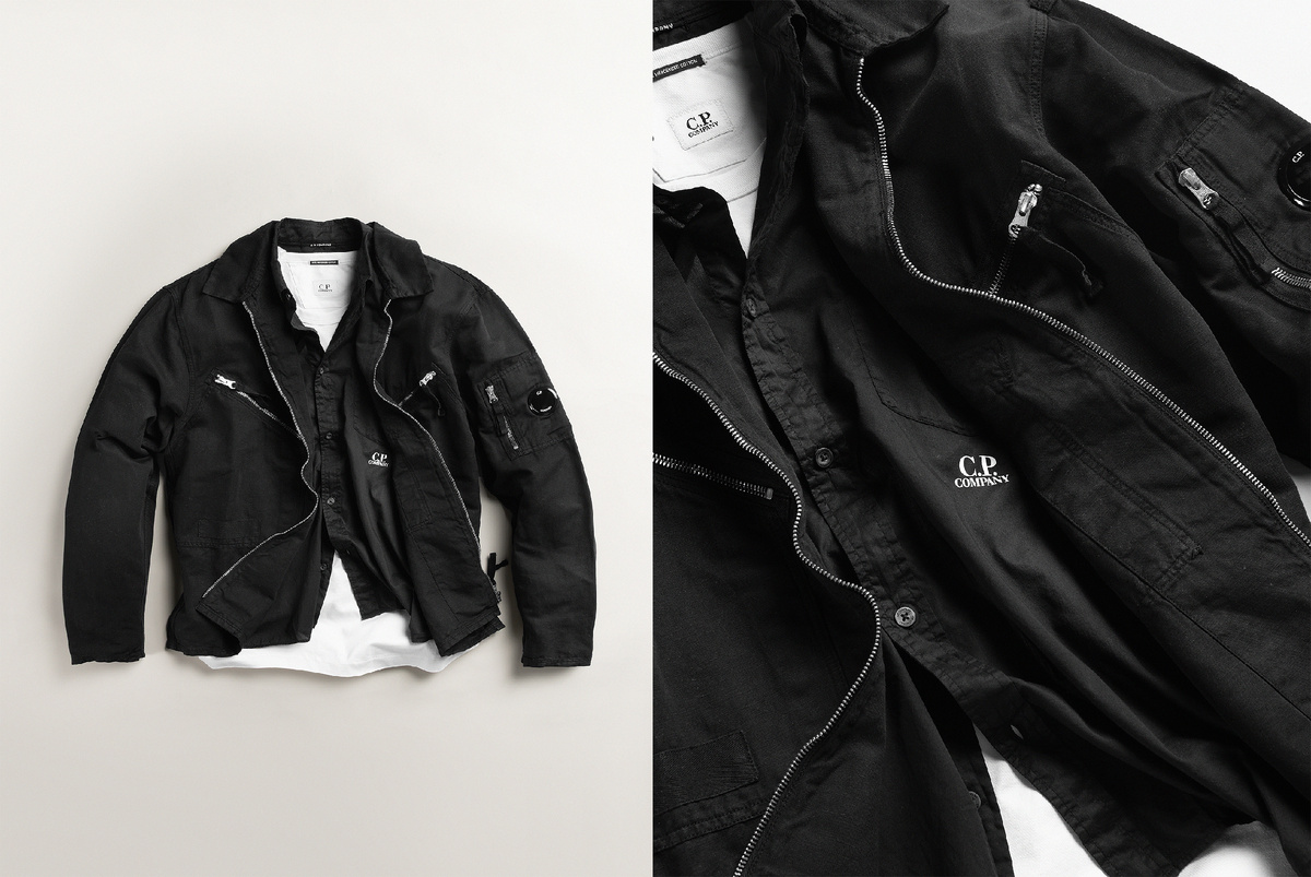 Технология Garment Dye стала определяющим приёмом бренда в середине 1970-х, когда Массимо Ости начал экспериментировать с окрашиванием уже собранных изделий. Такой подход позволял цвету ложиться неравномерно, подчёркивая швы, конструкцию и плотность материала, а не скрывая их. Впервые метод активно применялся в куртках, брюках, рубашках и трикотаже, где сложная форма особенно чувствительна к цвету. Со временем Garment Dye превратился в системный инструмент, формирующий характер коллекций и создающий глубокую, живую палитру, меняющуюся по мере эксплуатации. Работа с материалами у C.P. Company строится вокруг того, как ткань реагирует на окрашивание и ощущается при носке. Знаковая ткань 50 Fili сочетает хлопок и нейлон в плотном переплетении, сохраняя баланс между мягкостью и структурой; Nycra R была разработана как водоотталкивающая и дышащая основа, способная равномерно впитывать краситель без потери функциональных свойств. Используются и другие технические полотна, включая Taylon L с