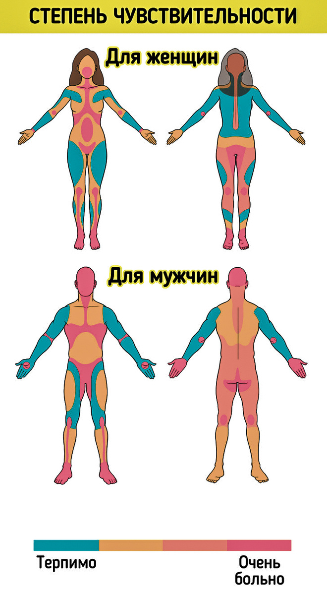 Фраза «красота требует жертв» знакома всем. И татуировка действительно относится к тем процедурам, где без ощущений не обходится. Именно поэтому многих волнует главный вопрос: где больнее всего делать тату? В тату-индустрии существует так называемая «карта боли» — условная схема тела, где зоны разделяют по уровню чувствительности. Она помогает ориентироваться новичкам, но важно понимать: это не строгий закон, а лишь общая статистика. Чаще всего самыми чувствительными считаются зоны, где кожа тонкая, мало жировой прослойки и близко проходят нервные окончания. К таким областям относят рёбра, ареолы, паховую зону, внутренние сгибы локтей и коленей. Здесь ощущения действительно могут быть интенсивнее. К зонам повышенной чувствительности также относят лицо, шею, кисти, ладони, стопы, лодыжки, позвоночник, область лопаток и запястий. Многие ожидают, что именно там будет «невыносимо», но на практике всё часто оказывается проще, чем в воображении. Средний уровень дискомфорта обычно ощущается н
