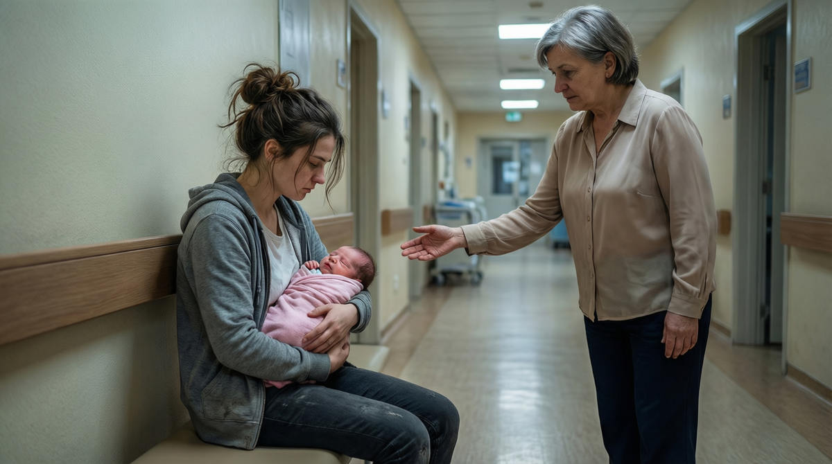«Мне некуда идти», — шептала она сквозь слёзы, качая на руках больную дочку. Её только выписали из роддома, но она просидела весь день в коридоре больницы, прижимая к груди маленькое тельце, обёрнутое в розовый плед. Вокруг — стены, выкрашенные в бледно-зелёный цвет, запах антисептика, глухие шаги медсестёр и далёкий плач других новорождённых. Но для неё всё это было как за толстым стеклом — она слышала, но не воспринимала. Её мир сузился до одного крошечного лица с синеватыми кругами под глазами и прерывистого дыхания.