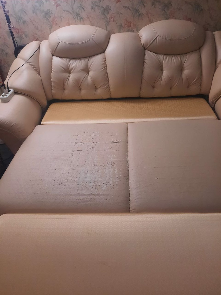 Отдам диван, 210 с подлокотниками, спальное место 160, длина 230. Кожа облупилась. Нюансы на фото. Без ящика. Самовывоз. Срочно. Славянский бульвар