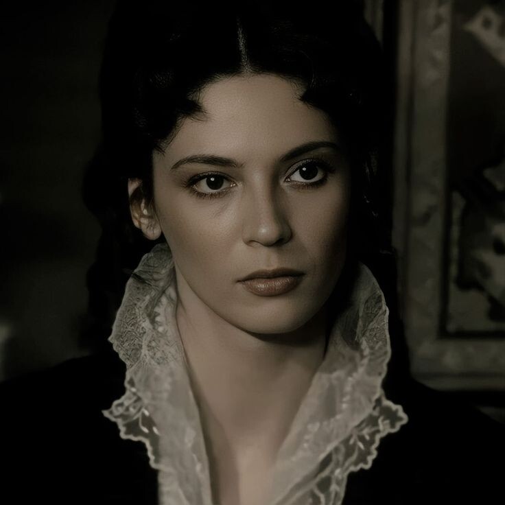 «...глаза темные, глубокие…» — в них светится безграничное глубинное страдание души, темное, одинокое и такое недоступное. «…лоб задумчивый…» также подтверждает глубокое одиночество этой женщины: она заключена в свои страдания, она много размышляет, рефлексирует, и навряд ли есть хоть одна живая душа, с которой она может разделить свое страдание, оно пульсирует очень глубоко в ее душе.