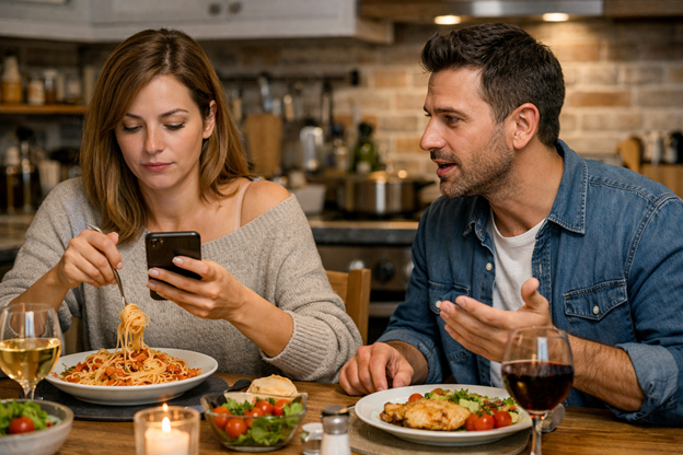 Однажды, спустя полгода после того разговора на кухне, Олег готовил ужин. Снова пасту с томатным соусом. Лена сидела на кухне - не с ноутбуком, а с книгой - и читала вслух отрывки.
