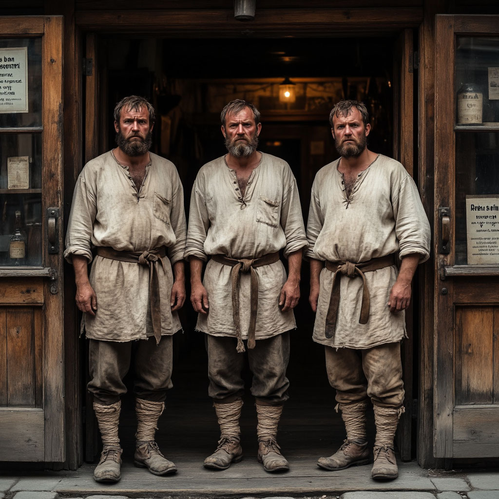 В начале 2000‑х, когда Волгоград ещё хранил следы бурного XX века, а городские бары жили своей ночной жизнью, в одном из заведений на улице Комсомольской произошёл случай, о котором до сих пор рассказывают шёпотом. Был обычный пятничный вечер. В баре «Старый причал» толпились посетители: студенты, офисные работники, завсегдатаи с соседних улиц. Играла музыка, звенели стаканы, кто‑то громко смеялся у стойки. И вдруг дверь распахнулась — вошли трое мужчин. Их вид сразу привлёк внимание. Одеты не по моде: грубые холщовые рубахи, подпоясанные верёвками, лапти, на плечах — ветхие зипуны. Лица обветренные, руки в мозолях, глаза — настороженные, будто у людей, впервые увидевших столько огней и стекла. Они остановились у входа, оглядываясь с явным недоумением. Бармен, привыкший к эксцентричным гостям, спросил: