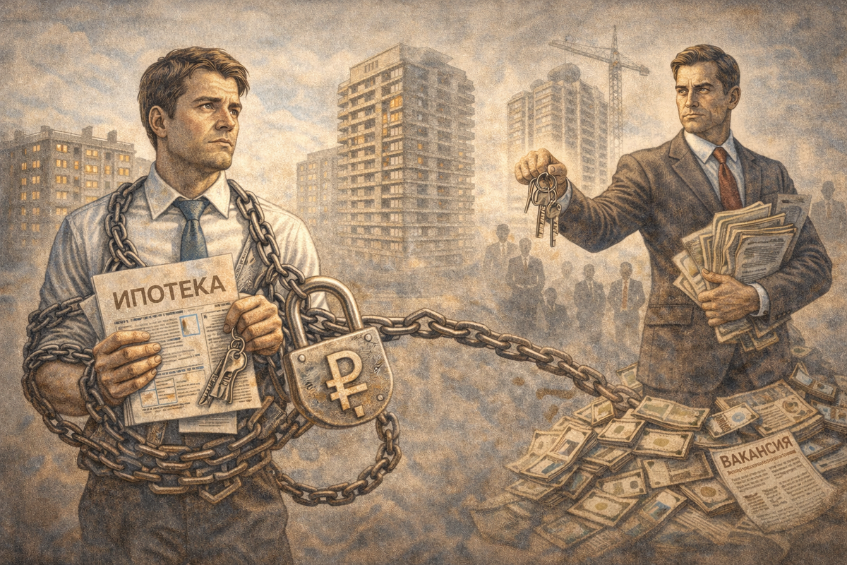 Ипотеку много лет подают как социальное благо: «свой угол», «уверенность в завтрашнем дне», «инвестиция в будущее». Формально всё так и есть — человек получает квартиру. Но если посмотреть на ипотеку не как на мечту, а как на экономический инструмент, картина меняется. Средний срок ипотечного кредита в России — 20–25 лет. Первоначальный взнос — от 15 до 30 процентов. Переплата по кредиту часто достигает двух, а иногда и двух с половиной стоимостей квартиры. Фактически человек покупает одну квартиру себе и ещё одну — банку. И это считается нормой. Главное последствие ипотеки — даже не деньги. Главное — поведение. Человек с ипотекой реже меняет работу, почти не рискует, не уходит в конфликт, не начинает новое дело. Он становится максимально осторожным. Любой сбой — потеря дохода, болезнь, пауза — превращается в угрозу не комфорту, а базовой безопасности. Поэтому он держится за стабильность любой ценой. Для экономики это удобно. Ипотека привязывает людей к городам, стабилизирует рынок тр