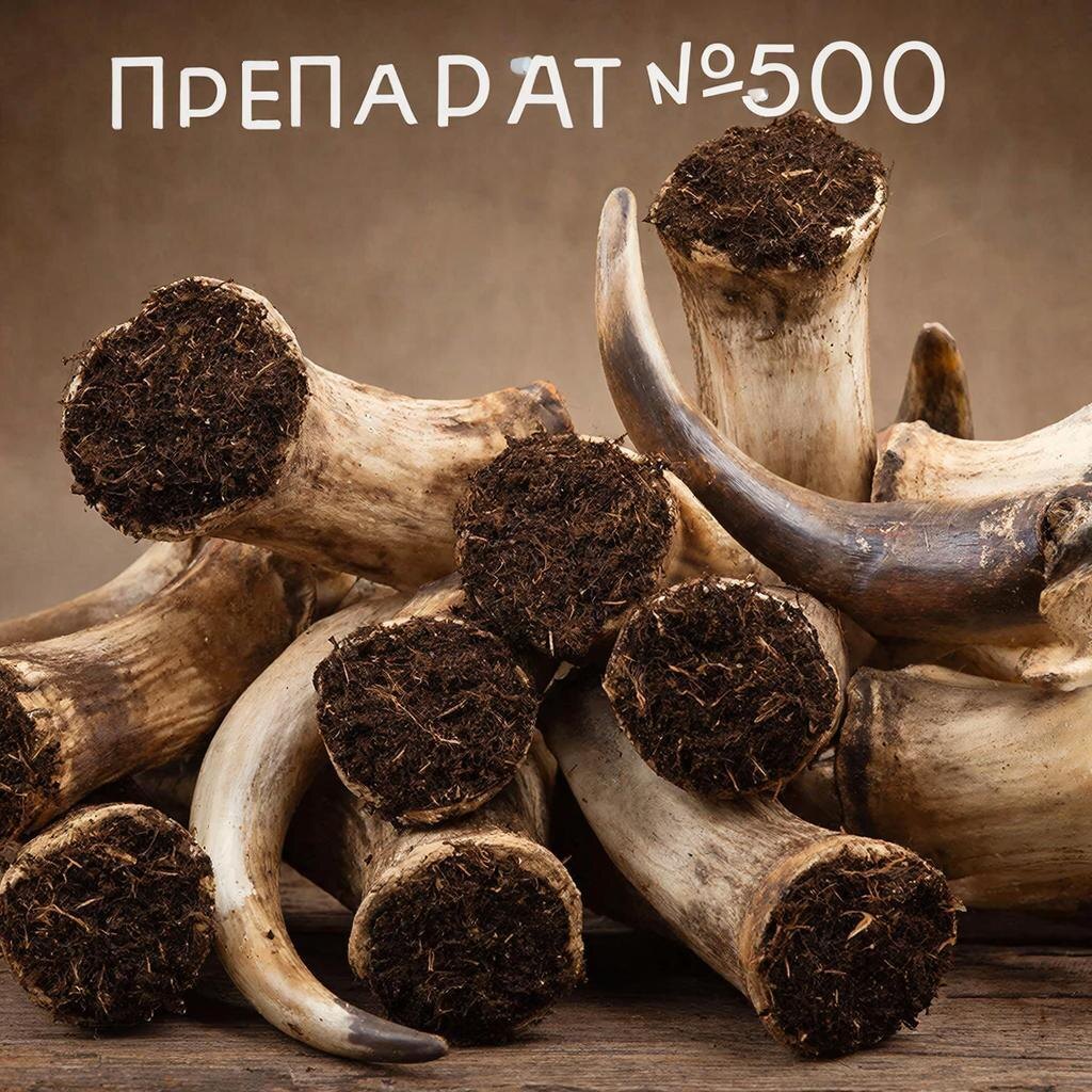 Что такое роговая смесь? Препарат №500 состоит из высококачественного коровьего навоза, который помещается в рога коров и выдерживается в земле определенное время. За счёт особых условий хранения в земле происходят биохимические реакции, придающие веществу особые свойства. Процесс изготовления: 1. Осенью собирают свежий коровий навоз высокого качества. 2. Навоз размещают в высушенные бычьи рога и аккуратно укладывают их в специально подготовленную траншею глубиной примерно 0,5 метра. 3. Затем рога засыпают землей и оставляют зимовать до весны следующего года. 4. Весной, когда грунт прогревается, препарат извлекают из земли и начинают готовить к использованию. Свойства роговой смеси: 1. Структурирование почвы: роговая смесь улучшает физические характеристики грунта, увеличивая содержание гумуса и облегчая проникновение воздуха и влаги. 2. Микрофлора и микориза: создает среду обитания для полезных бактерий и грибов, способствуя здоровому микробиологическому балансу. 3. Поддержка роста ко