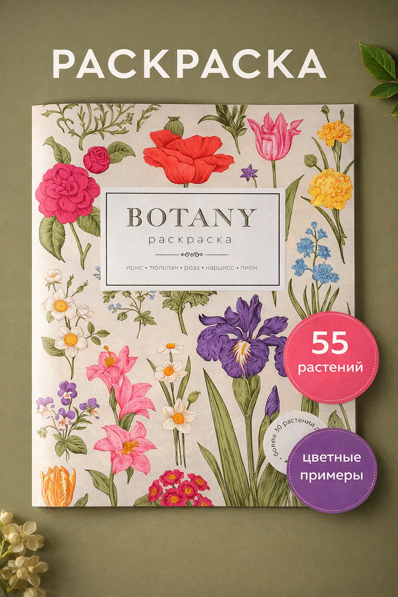 - Качественная и познавательная тематика: Сборник из 55 разнообразных растений с подписями на русском и английском языках. Это не только творчество, но и возможность узнать новое о ботанике.