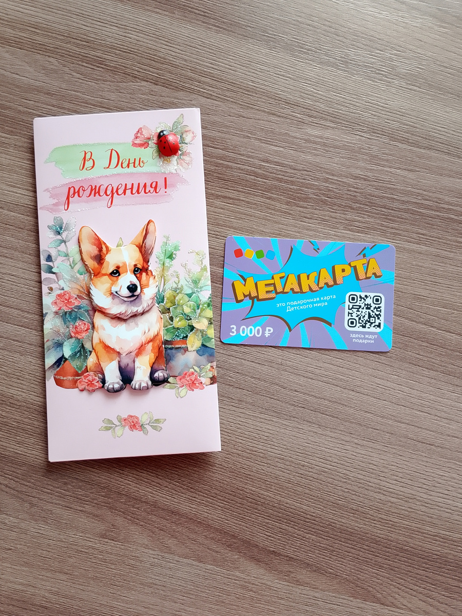 В Детском мире еще купила конверт для денег, но у меня будет для карточки. Василина обожает корги. Все просит его себе🫣. Но собаку лучше держать в доме, а не в квартире.