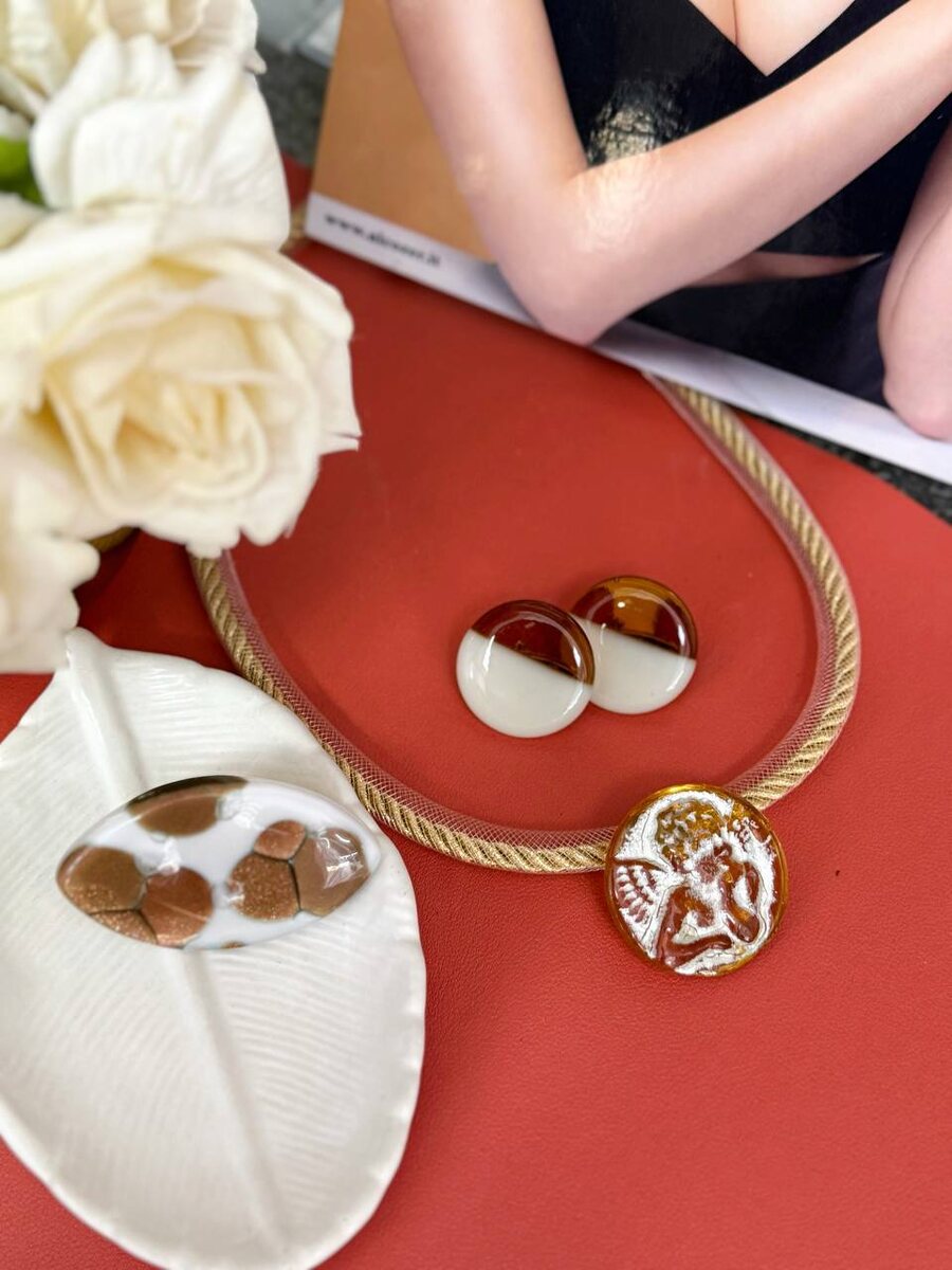 »🤎 Они не спорят с образом, а добавляют глубину: от топлёного сахара до тёплого мёда, с живым стеклянным сиянием. Именно за это стекло любят и люкс-бренды. Chanel, Dior, Schiaparelli регулярно используют стеклянные элементы в показах и коллекциях — как знак мастерства, истории и настоящей работы руками, а не фабричного тиража. Аксессуары в карамельных тонах — спокойный акцент, который хочется рассматривать ближе.🔍 Колье 7800-15%=6 630 Кольцо 3315 Серьги 3600-15%=3060 ✨Нажмите для заказа ✉️ Нажмите чтобы задать вопрос