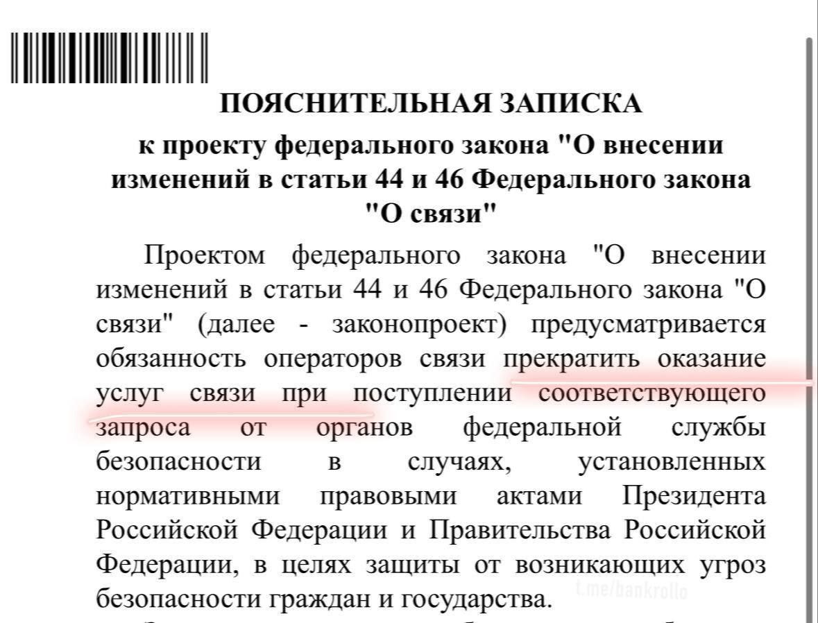 Такой законопроект депутаты Госдумы рассмотрят уже сегодня. После его принятия операторы связи будут обязаны приостанавливать по требованию силовиков оказание любых услуг связи «для защиты граждан и государства от угроз безопасности».