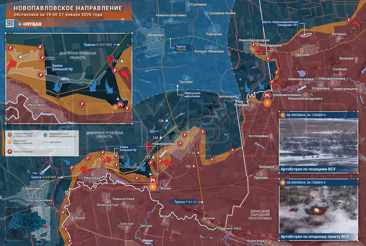 🔸На Новопавловском направлении противник не только смог удержать саму Новопавловку, но и восстановил часть позиций на нескольких участках. 🔸На восточном фланге, судя по кадрам объективного контроля, украинские формирования восстановили контроль над Новониколаевкой. По свежим материалам видно, что по району работает 152-мм артиллерия. 🔸На западном фланге направления противник сумел вклиниться между Ивановским и Новопавловкой. Ранее малые штурмовые группы ВС РФ проходили здесь на север по цепочке укреплений на холмах. С целью не допустить утраты Новопавловки, противник смог как минимум частично восстановить контроль над подступами к подъёмам на холмы западнее от населённого пункта. 🔸В самой Новопавловке обстановка, судя по всему, существенных изменений не претерпела. Южные и юго-восточные окраины остаются под контролем ВС РФ, тогда как северо-западная, более высокая часть населённого пункта удерживается противником. Центральная часть по-прежнему остаётся в «серой зоне». 🔸Новопавловс
