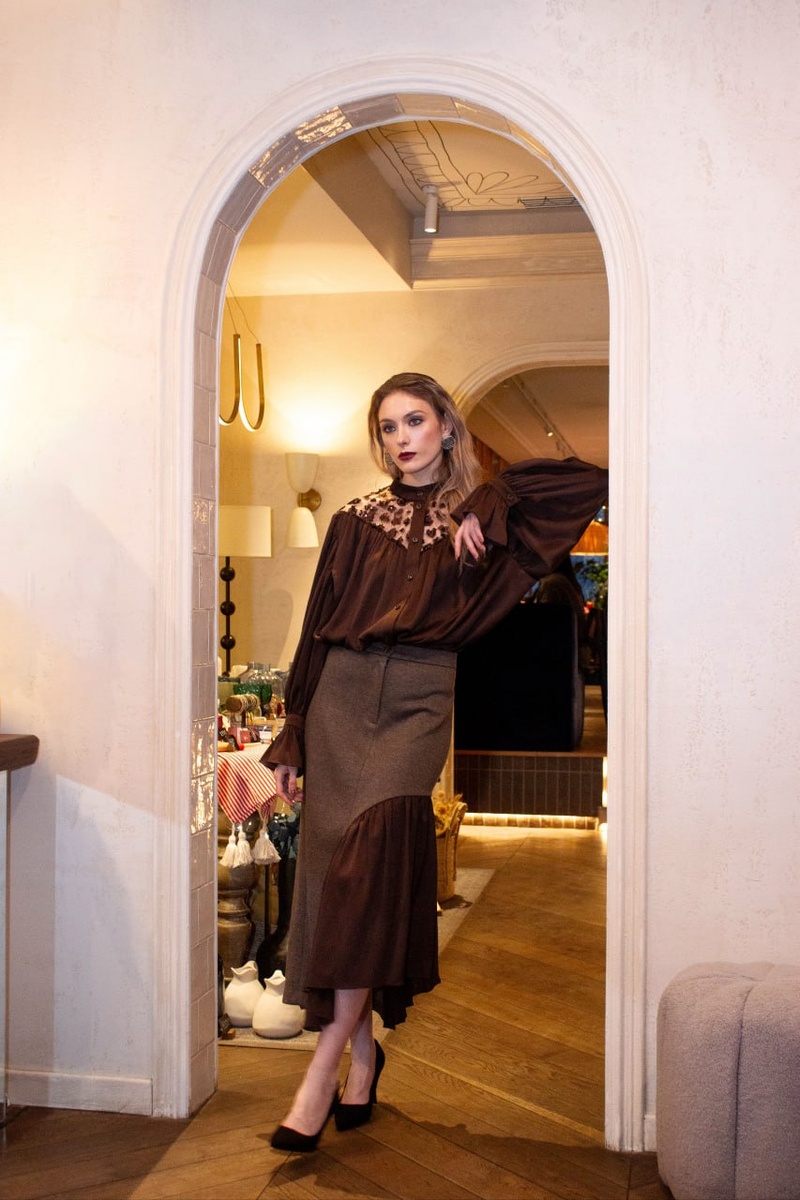 💜 Блуза коричневая с пайетками и широким рукавом | В наличии | 21.000 р. | Арт.: КА-БЛ105 Юбка-миди с атласной вставкой | В наличии | 15.000 р. | Арт.: Ка-Кост151.2 Размеры уточняйте. Весь образ в наличии на сайте бренда katyaander.ru