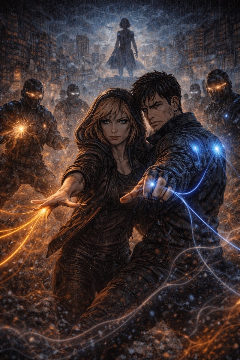 Вдоль улиц, из тумана, появились фигуры в черной форме — офицеры Корпуса, их нити были холодными и ровными, как сталь. Они не сомневались, не колебались. — Аэлин, — сказал Каэл, — держись ближе. Не отпускай меня. Её сердце сжалось, но она кивнула. Их пальцы сомкнулись сильнее, и Нить Мира между ними вспыхнула мягким золотым светом. — Они приближаются, — предупредила Лира, появившись на мгновение, как отражение в витрине. — Будьте готовы. Когда офицеры Корпуса подошли, Нить Мира вышла из их контроля. Она заволновалась, защищая своих избранных, и энергия вспыхнула вокруг Аэлин и Каэла. Пе