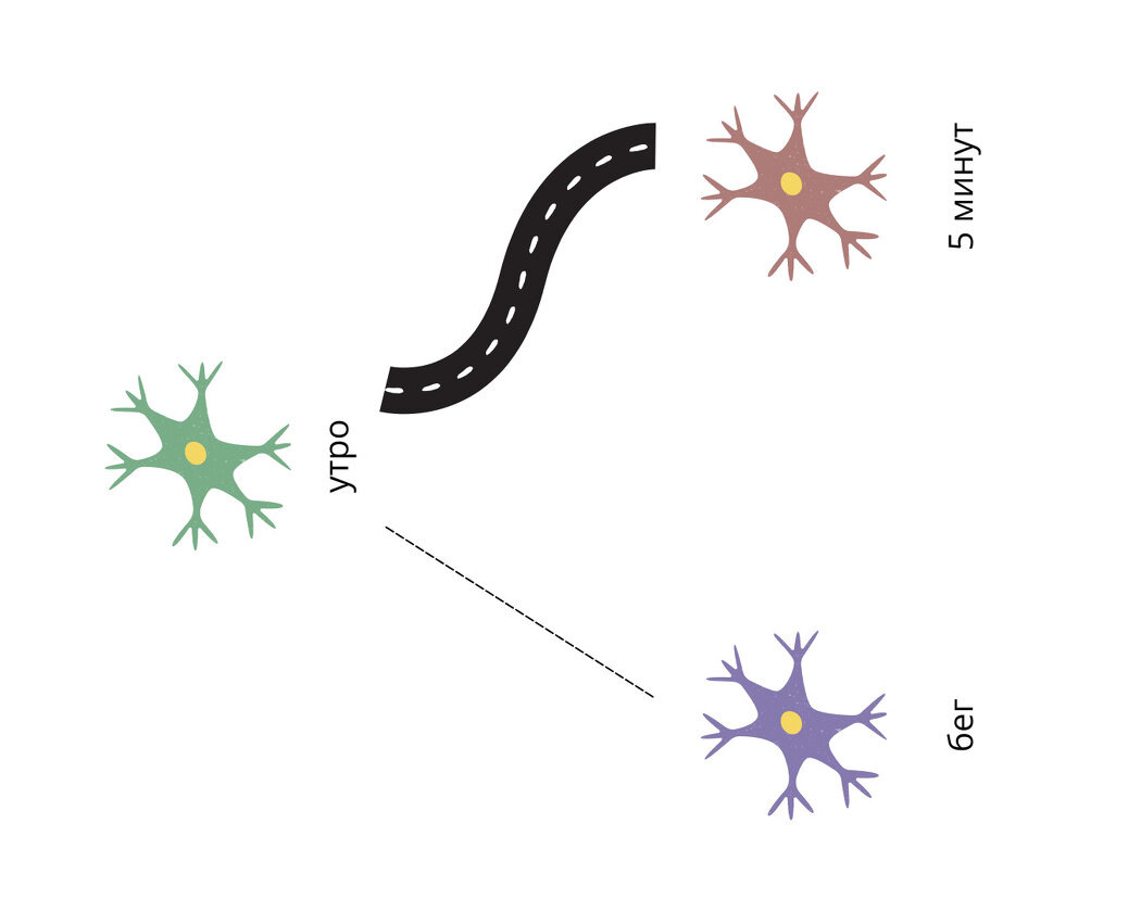 Проходит Новый год, День Рождения, Понедельник, Новолуние и прочие значимые даты для изменений в жизни, однако они почему-то так и не происходят. Трусы на люстре денег не приносят, Дед Мороз не делает утро более приятным для пробежки, да и идеальный понедельник заканчивается и наступает вторник на который просто нет больше сил. Получается, что это не работает и нужно брать во внимание иные моменты. Давайте их разберем через науку и ваши личные примеры. Думаю вы уже слышали про нейроны и нейронные связи, так вот, дело в них. Информацию далее сильно упрощу, чтобы это не становилось скучной и длинной лекцией. Итак, наши мысли, действия, привычки и прочее записано в нейронах. А вот за то, какие нейроны активировать для воспроизведения, отвечают нейронные связи. Поэтому дело не в том, насколько вы хорошо знаете, а насколько часто ваш мозг отправляет сигнал в нужную папочку с нейронами. Например, папка/нейрон “утро” привыкла к связи с папкой/нейроном “еще 5 минут”. И чем чаще вы использовали