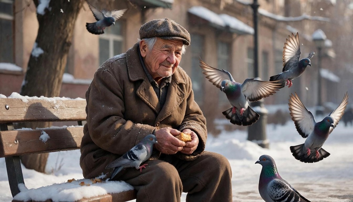 — А меня нутро греет, — усмехнулся он. — Пока печка внутри горит, мороз не страшен. Вот только дрова кончились. Сам не поел, и птицам крохи остались. Живот подводит.