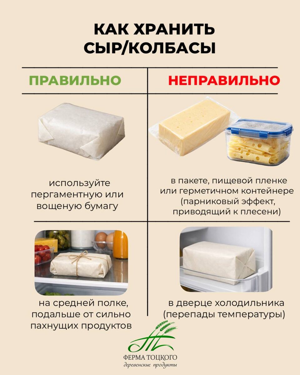 Дорогие покупатели, обращаем ваше внимание на правила хранения сыров и колбасных изделий