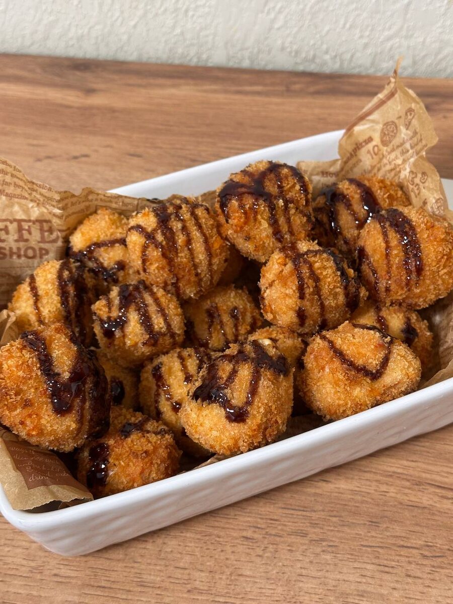 😡 Приспичило сделать суши шарики Подробный рецепт оставлю тут Все так же ,только вместо измельченных чипсов у меня сухари панко . Они бледные в духовке особо не получится добиться золотистого цвета. Поэтому жарила в огромном количестве масла 🙈 Они вкусные ( очень 😁) только когда с пылу жару . Часть я попробовала заморозить, потом посмотрю как будет после морозилки