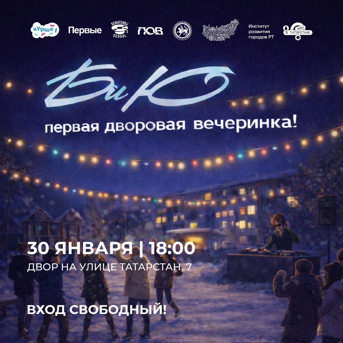 🕺💃30 января в 18:00 во дворе по адресу ул. Татарстана, 7 в Казани состоится зимняя дискотека «БиЮ» Вечеринка «БиЮ» реализуется в рамках зимнего сезона фестиваля «Күрше». В программе - диджей-сеты от подростков, прошедших обучение в Scratch DJ School. За пультом выступят Meraki и Samira Underage. На площадке будет работать станция с бесплатными горячими безалкогольными напитками, также запланированы интерактивы для гостей и жителей ближайших домов. Событие организует подростковое медиа «ПОВ» при поддержке движения детей и молодёжи «Движение Первых», школы диджеинга Scratch DJ School и префектуры «Старый город». Зимний сезон «БиЮ» реализуется в рамках зимнего сезона фестиваля «Күрше»; организатор конкурса - Фонд «Институт развития городов Республики Татарстан» при поддержке Раиса Республики Татарстан. @tatmediaofficial | Все каналы Татмедиа ™️ 1-й новостной MAX-канал Татарстана - подпишитесь.