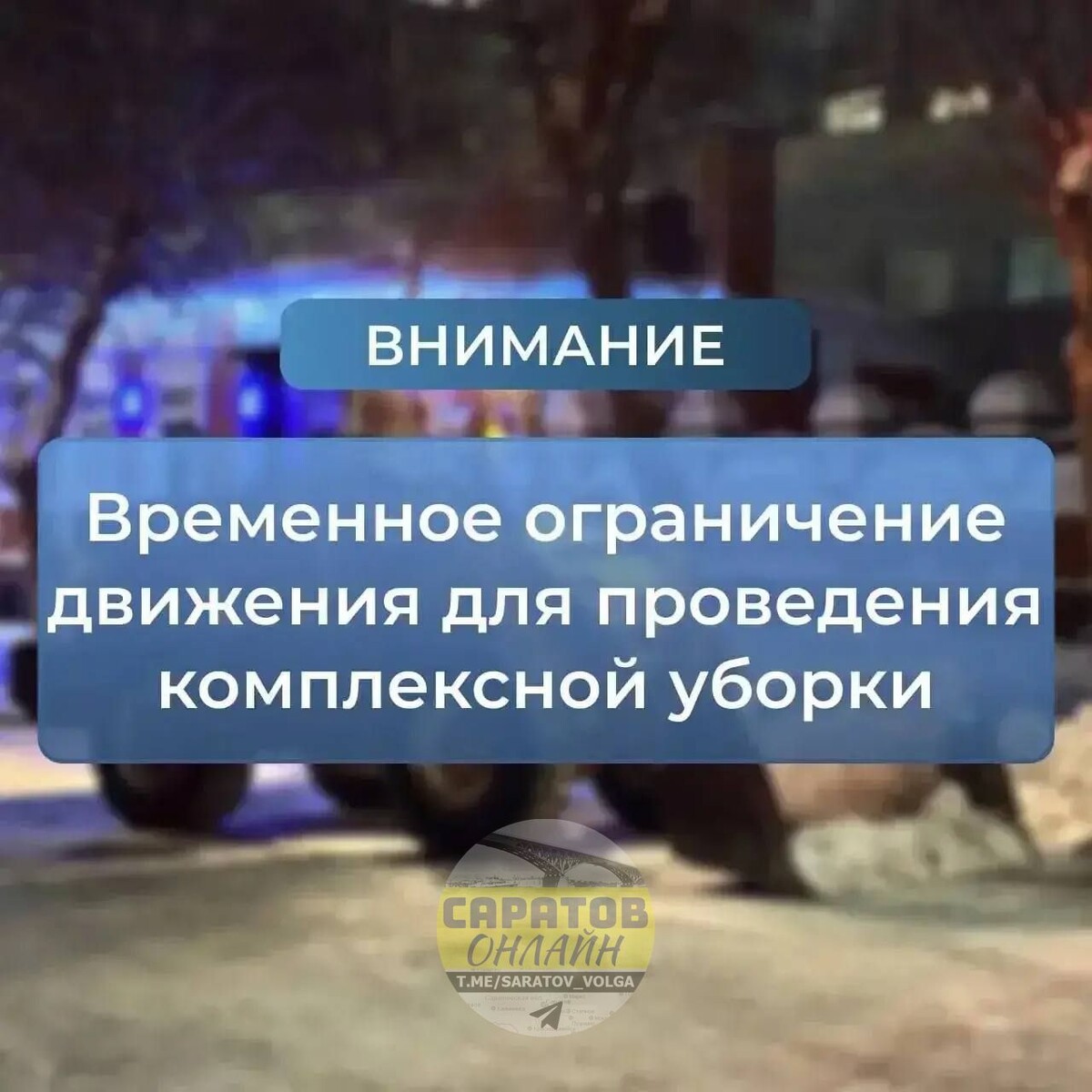 Сегодня запланирована комплексная уборка с временным ограничением движения с 20:00 📍Ул. Рахова от ул. Челюскинцев в сторону ул. Зарубина 📍Ул. Рахова от ул. Посадского до ул. Зарубина 📍Ул. Рахова от ул. Зарубина до ул. Кутякова С 21:00 📍Ул. Соборная от ул. Московская до ул. Челюскинцев 📍Ул. Астраханская от ул. 2 Садовая до ул. 2 Станционный пр. 📍Ул. Астраханская от ул. Шелковичная до ул. Новоузенская 📍Ул. 2 Станционный пр. от ул. 2 Садовая до ул. Дегтярная. ❗️Автомобилистов просят заранее планировать маршруты и оставлять контактные данные при парковке. ▫️САРАТОВ ОНЛАЙН ▪️ЭНГЕЛЬС ОНЛАЙН 📲 Мы в мессенджере MAX