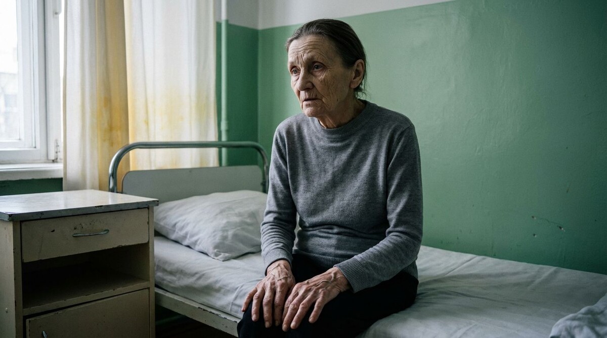 Она сидела на узкой кровати. Без платка. Волосы, седые и редкие, лежали неприбранными. Руки на коленях — худые, с выступающими венами.