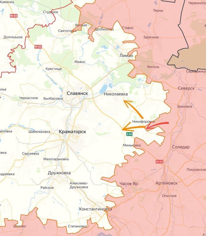 Российские отряды подошли к населенному пункту Никифоровка, которая находится между Северском и Славянском. Под контролем уже около половины села. ВСУ вынуждены отступить под Кривую Луку и Закитное, Подразделения ВС РФ продвигаются на высотах около Хромовки на 3 км и смогли дойти до окраин Никифоровки и Сорочьего леса - укрепрайона ВСУ перед Славянском и Краматорском. Евгений Линин в Telegram