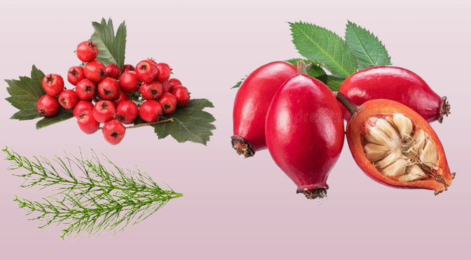 Плоды шиповника , цветки и плоды боярышника, хвощ полевой. По 3 столовых ложки всех сушеных компонентов залить 1 литром кипятка, настоять 15 минут под крышкой на водяной бане. Затем настоять 3 часа. Непроцеженный настой принимать по 0,5 столовых ложки 4 раза в день.