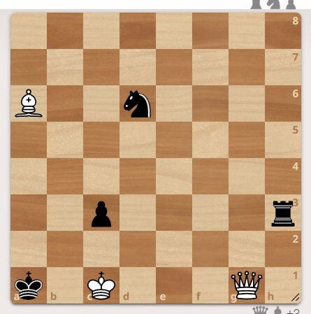 У чёрных конь, ладья и пешка.