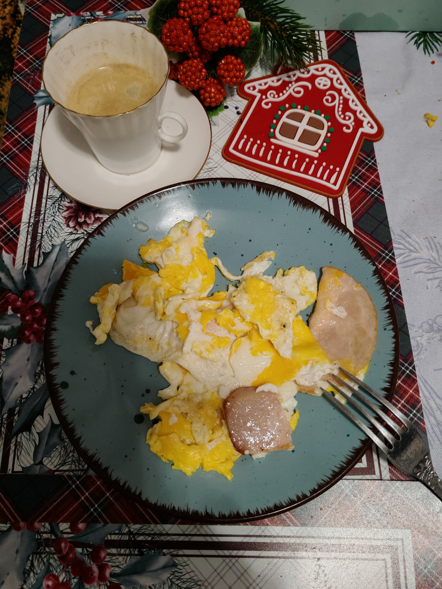 05.35 Мы вернулись. У меня неизменный чай с печенюшками, у собаки творог.