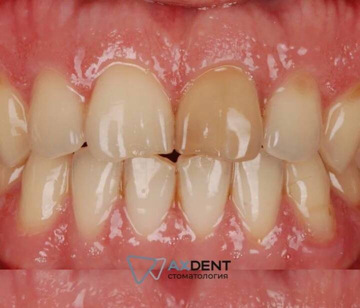Если обобщить, то проблема всегда выглядит так: все зубы как зубы, а один выделяется вызывающей серостью. Особенно это удручает, если зуб находится в видимой области улыбки. И если бы не он один такой “серенький волчок”, то улыбка смотрелась бы на порядок привлекательнее.