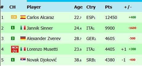 🔥 Если Алькарас победит Зверева, а Джокович победит Музетти, то Джокович, которому почти 39, может стать третьим в рейтинге! Но если Музетти выйдет в полуфинал, а Зверев проиграет, то, вопреки всем ожиданиям, он станет третьим 🎾 Подпишись на Эйс и точка