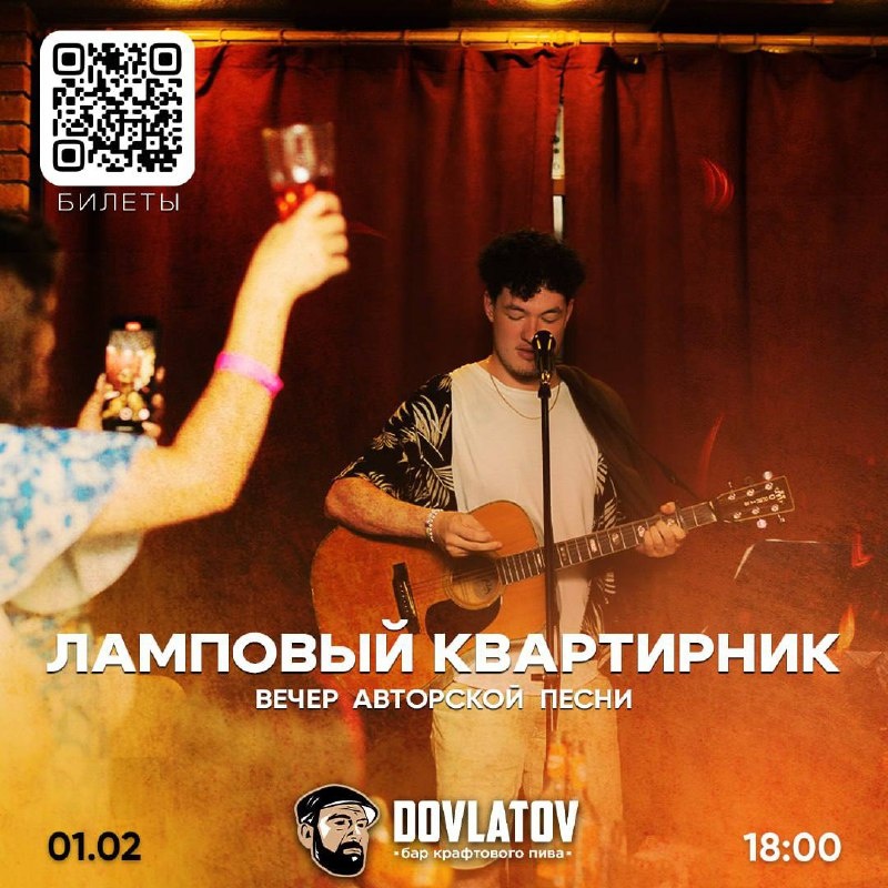 🎼 🗓️ 1 февраля, сбор гостей в 17:30, начало в 18:00 📍бар Довлатов Чтоб не мерзнуть этой зимой, в камерном пространстве бара мы соберём талантливых авторов города, чтобы поделиться историями, эмоциями и новыми мелодиями. Здесь не будет шумной сцены и холодного света — только близость к музыкантам, живые голоса, мягкий свет, и ощущение, что вы пришли к друзьям в гости. Приходите, чтобы услышать музыку, которой ещё нет в эфире, почувствовать энергию творчества и стать частью музыкальной истории Ульяновска. Билеты 🎟️ *Если вы музыкант и тоже хотите принять участие в будущих квартирниках, присылайте видео выступлений в личные сообщения группы и ребята с вами свяжутся #1февраля26@culturnik