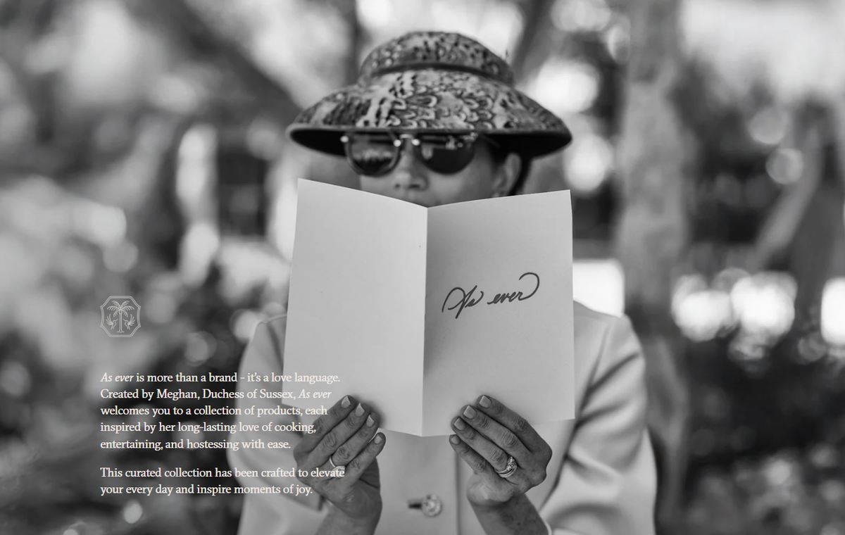 Герцогиня Сассекская засуетилась и вовсю "продвигает" свой бренд As Ever и его товары. Оно и понятно: "запасы" на складах бренда - фантастические, порядка 650 тысяч единиц. А у продуктов, даже таких как чай, есть сроки годности. Так что Меган Маркл прилагает все усилия, чтобы избавиться от пыльных залежей на полках, в частности, миксуя товары в "коллекции" и предлагая их покупателям к "датам": Но покупатели не впечатлены и спрашивают: а почему никаких новинок? Кто сказал Меган, что "фруктовый спред" - это хорошая идея подарка в День всех влюбленных? А почему одна баночка спреда стоит 12 долларов, а набор из трех - 42 доллара? А почему нет скидок к празднику - Дню святого Валентина? Вот ведь какие, на них не угодишь! А Меган так старается! Вот, и фото новое разместила на сайте As Ever. Оно подписано: "As Ever - это больше, чем просто бренд, это язык любви. Созданный Меган, герцогиней Сассекской, бренд As Ever предлагает вам коллекцию товаров, каждый из которых вдохновлен ее давней