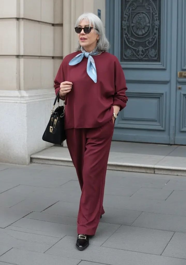 Обычно женщины, которым 60 лет и более, все свое время и заботу направляют на повзрослевших детей и внуков. Уход за собой они отодвигают на второй план. В их гардеробе преобладают скучные и мрачные вещи. Но все это неправильно. Заботиться о себе тоже можно и даже необходимо. Тотал лук – отличный вариант для создания повседневного образа. Лучше всего использовать одежду нейтральных или пастельных тонов. К примеру, брючный костюм, базовую футболку или свитер. Обувь тоже стоит подбирать в тон костюму. Аксессуары добавляются по желанию.