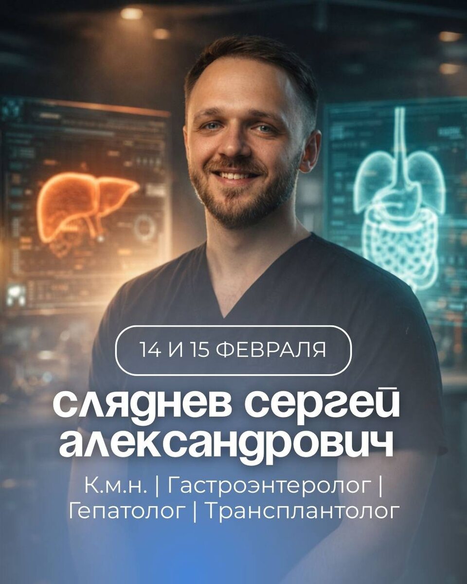 здоровье? Это редкая возможность попасть на приём к врачу федерального уровня, чьё мнение ценно не только в нашем регионе, но и в одном из ведущих национальном медицинском исследовательском центре. 🔍Сергей Александрович Сляднев — сильный специалист в гастроэнтерологии и гепатологии: ➡️врач, которому направляют сложных пациентов со всей России ➡️гепатолог, гастроэнтеролог, трансплантолог ➡️эксперт с более чем 10-летним клиническим опытом ➡️специалист, работающий там, где решают действительно непростые случаи 💡 На консультации вы получите: — профессиональный, глубокий разбор анализов и обследований — чёткое понимание, что происходит с печенью, желудком и ЖКТ — взвешенный, поэтапный план действий без запугивания и лишних назначений — ответы на вопросы, которые обычно остаются «между строк» 🗓14–15 февраля Количество мест ограничено. Запишитесь заранее — это приём к врачу, к которому обычно выстраиваются очереди. 📞 Запись: +7 (8652) 99-03-41 или через личный кабинет пациента