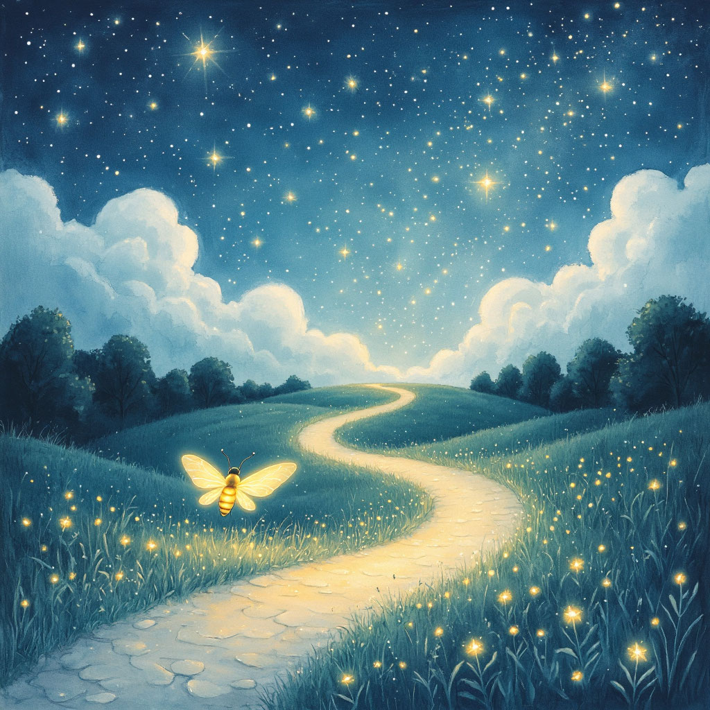 В одном волшебном лесу, где деревья шептали сказки ветру, а ручьи пели звонкие песенки, жил‑был маленький светлячок по имени Лучик. Он был совсем крошечный, с перламутровыми крылышками и тёплым золотистым огоньком на спинке. Лучик очень грустил: все остальные светлячки умели ярко светить, а его огонёк то мерцал слабо, то вовсе гас. — Я самый невзрачный светлячок на свете! — вздыхал он. — Никому не буду нужен с таким тусклым светом. Однажды вечером, когда на небо высыпали звёзды, Лучик сидел на листочке и смотрел на сверкающие огни вверху. — Почему ты такой печальный? — спросила его мудрая сова, бесшумно подлетевшая к дереву. — Мой свет слишком слабый, — признался Лучик. — Я не могу освещать лес, как другие. Сова мягко улыбнулась: — Каждый свет важен, даже самый маленький. Пойдём, я покажу тебе кое‑что. Она повела Лучика вглубь леса, где тропинка терялась во мраке. Вдруг из‑за кустов выбежала маленькая белочка — она плакала. — Я потеряла дорогу домой! — всхлипывала она. — Всё такое тёмн