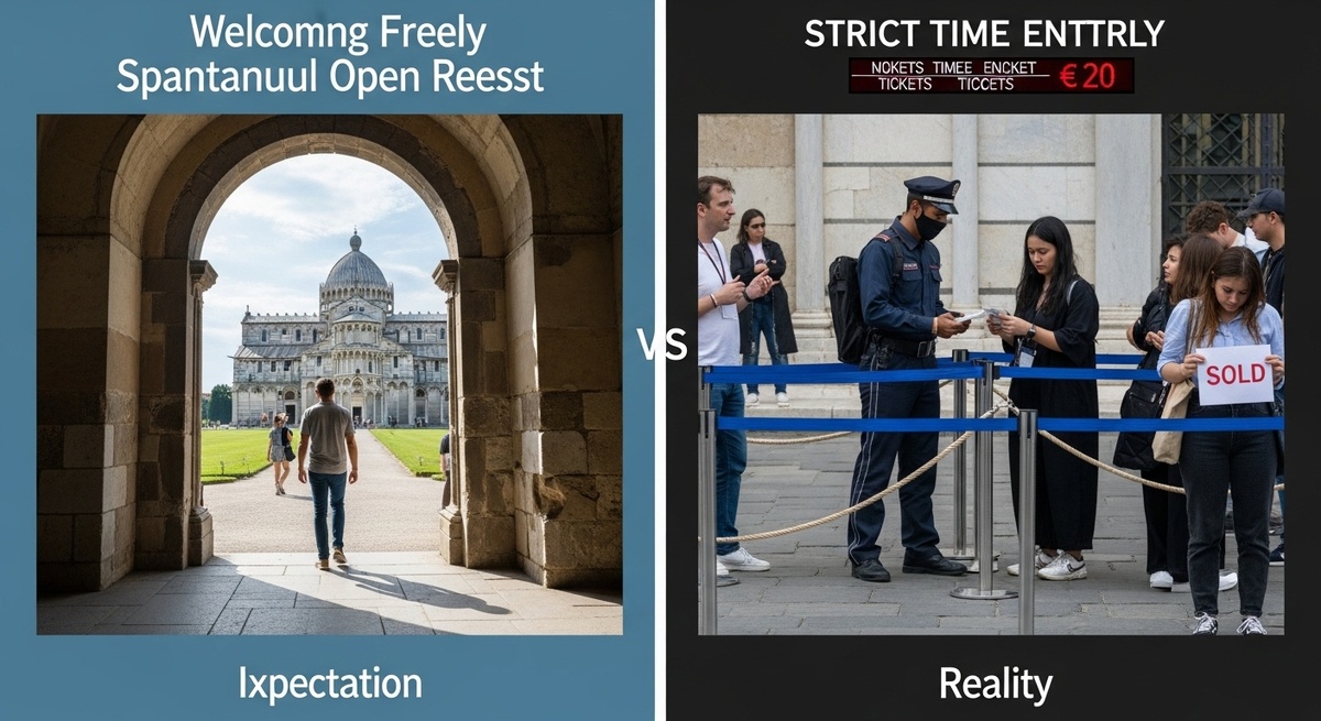 Пизанская башня кажется доступной. Реальность: вход по сеансам каждые 30 минут. 30 человек на группу. Билет 20 евро. Покупать за месяц онлайн. Без билета не попадёшь. Опоздал на минуту — билет сгорел. Внутри 15 минут. 294 ступеньки. Узко. Скользко. Наклон ощущается. Вид обычный. Охранник торопит. 5 минут на вершине. Наклон не такой драматичный. 3,97 градуса. Фото обманывают. Глупые туристы «подпирают» башню. Все одинаковые позы. Местные смеются. Площадь чудес толпы. Тесно. Шумно. Торговцы. Карманники. Внутри башни пустота. Никаких экспонатов. Разочарование за 20 евро. Город Пиза скучный. Смотреть нечего. Однодневная галочка. Лучше смотреть снаружи. Бесплатно. Красиво. Подниматься не обязательно. Стоит ли ехать? Если рядом — да. Специально — нет. Флоренция интереснее.