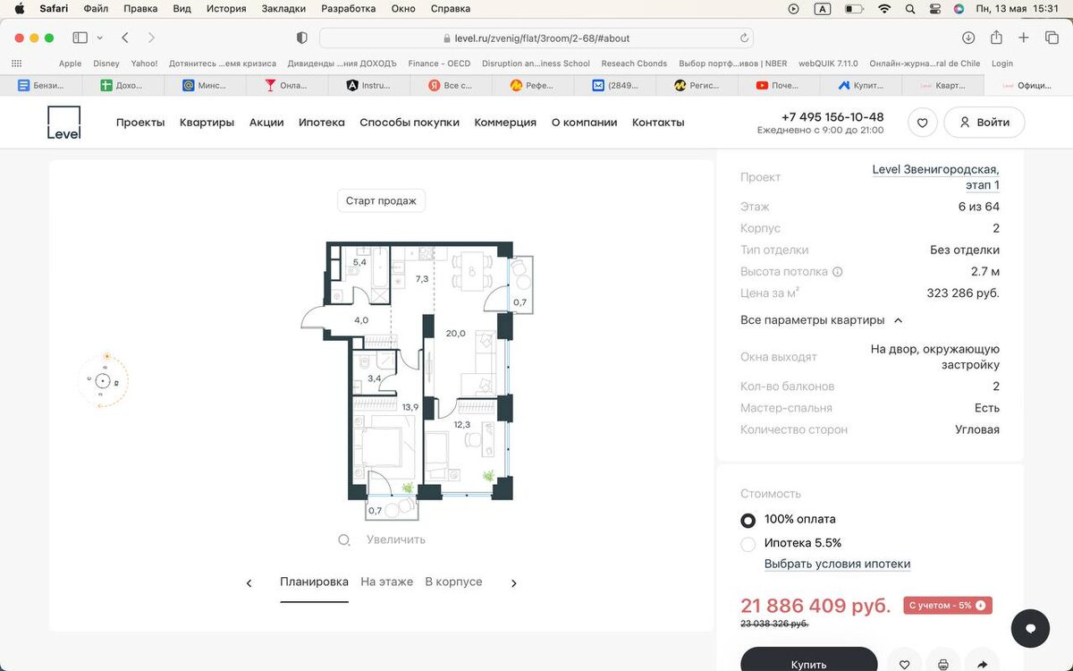 ? 🖇️Разбирала рабочий стол и наткнулась на скрин инвестиционного лота по новостройке, которую я включала в подборку инвестору в 24 году. 🌆 Квартира в Level Звенигородская. Креплю 2 скина с их сайта: от мая 24 года и от января 26 года. 🧐Тогда казалось, что ни о каких инвестиционных сделках не могло быть и речи, все на хаях. Отбирала лоты по крупицам. Но, не смотря на то, что комплекс еще строится, интересная динамика уже заметна. 🔎Сравним: 🔸Лот от 13.05.24г. Базовая цена за наличные 21 886 409р. (квартира была акционная, тк у Level были запланированы новые проекты, видимо акция для наполнения эскроу) 🔸Лот сегодня от 27.01.2026г. Базовая цена за наличные 33 160 152р. ▫️с учетом поправки (-5%) 31 502 144р. Такого же этажа уже нет продаже, есть только повыше, этажи выше - всегда дороже, поэтому делаю поправку -5% на этаж и на доп.скидку. Да, ЖК еще строится, но уже виден абсолютный прирост 9 615 735р. ( ~43.9%) 📈Оценка среднегодовой доходности, если перевести рост за ~1 год
