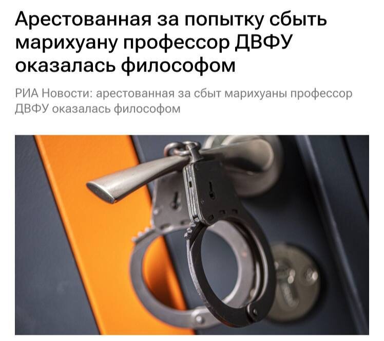 Преподаватель ДВФУ попыталась продать 8 грамм марихуаны, но попалась полицейским. По данным правоохранительных органов, операция по задержанию прошла в рамках планового рейда по выявлению наркопреступлений — преподаватель была взята с поличным при передаче запрещённого вещества. Теперь ей грозит до 15 лет тюрьмы. @dlon Новости от Dlon. Подпишись