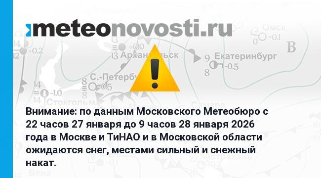 Внимание: по данным Московского Метеобюро c 22 часов 27 января до 9 часов 28 января 2026 года в Москве и ТиНАО и в Московской области