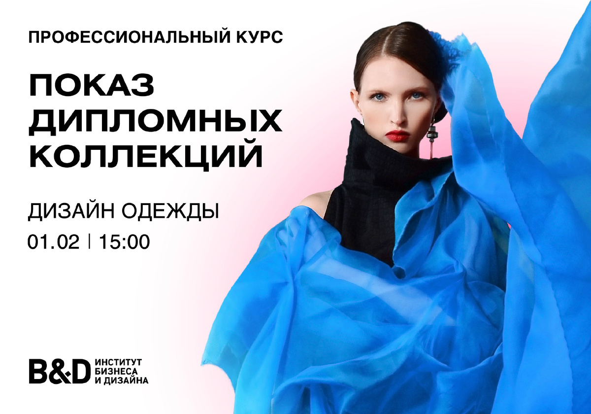 По итогу 20 месяцев обучения 1 февраля в 15:00 состоится открытый показ дипломных коллекций выпускников профессионального курса «Дизайн одежды». Гостям мероприятия будут представлены портфолио, лукбуки, видеопрезентации и непосредственно образы авторских коллекций женской и молодёжной одежды. Разработка авторской коллекции нарядной женской одежды с использованием авторской ручной вышивки, вдохновлённой райскими птицами. Разработка авторской коллекции женской одежды в ретро-стиле 1950-х годов, с использованием авторского принта, вдохновлённой культурой русской усадьбы. Разработка авторской коллекции одежды в стиле «Sport futurisme», вдохновлённой этнокультурными традициями Японии. Разработка коллекции женской одежды с использованием авторского принта, отражающей соединение этнокультурных традиций и молодёжных движений Китая и России. Разработка авторской коллекции женской одежды с элементами классического стиля, вдохновленной пейзажами зимнего морского побережья. Разработка авторской ко