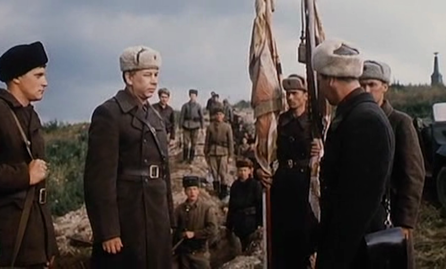 После этого шедевра, вспомнился мне совсем неудачный фильм, целая киноэпопея — «Битва за Москву». Там показано, как посреди Бородинского поля готовятся к бою и роют траншеи среди памятников некие добровольцы-москвичи. Они даже в штатском и, видимо, это упоминаемые в разных других версиях сражений на Бородинском поле в 1941 году московские ополченцы (хотя даже ополченцы в штатском не ходили). Правда в фильме мелькает название 230-й полк, и становится понятно, что речь идёт про 230-й запасной стрелковый полк, который ни к ополчению, ни к добровольцам отношения не имеет. Зато полк действительно занимал позиции севернее Бородина.
