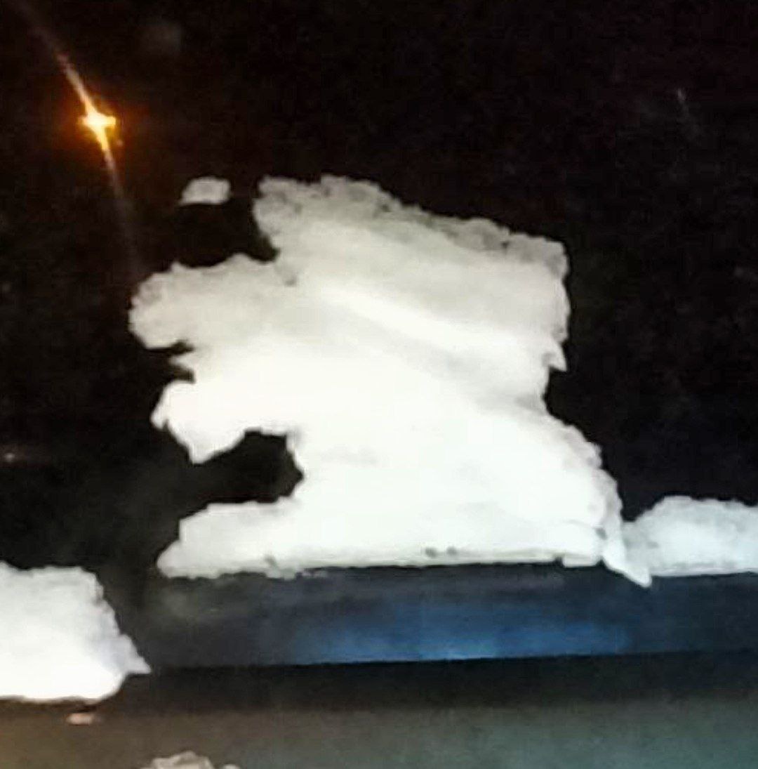 Везде вижу лица — никуда не могу от них деться. Обычно задним умом понимаю, что это игры разума. Но тут не могу не поделиться. Это шедевр, который и человек бы не сумел создать. Никто пальцем не прикасался — совершенно естественное таяние снега на заднем стекле автобуса. Восторг.