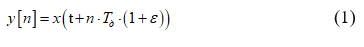 Математическая модель сигнала генератора приема y[n], учитывающая рассогласованность частот дискретизации (SRO), представлена выражением: