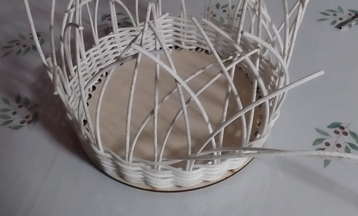 Донышко фанерное с готовыми отверстиями, покупала на Валберис. Пруток Пермский 3 мм. Вот такая простая вазочка у меня получилась .